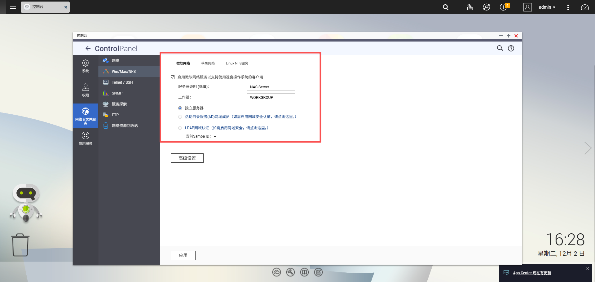 1、首先配置NAS的SMB服务,将NAS空间作为硬盘挂载到咱们电脑上