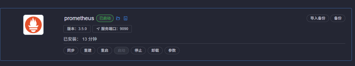 在1panel中可以直接安装prometheus的docker服务
