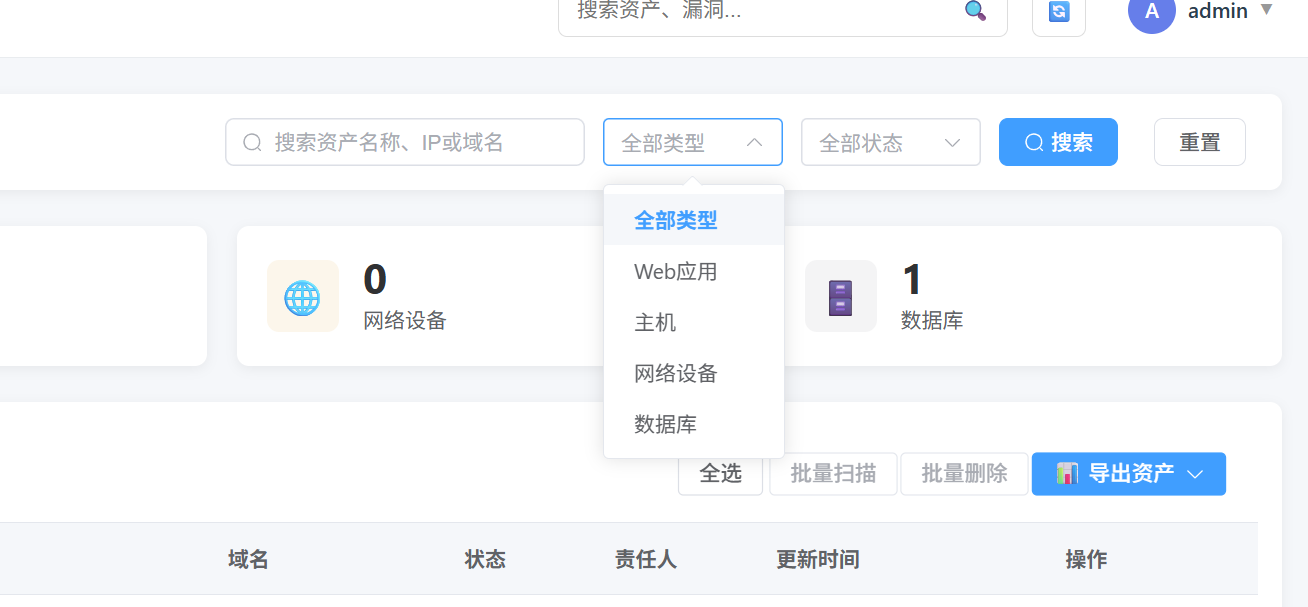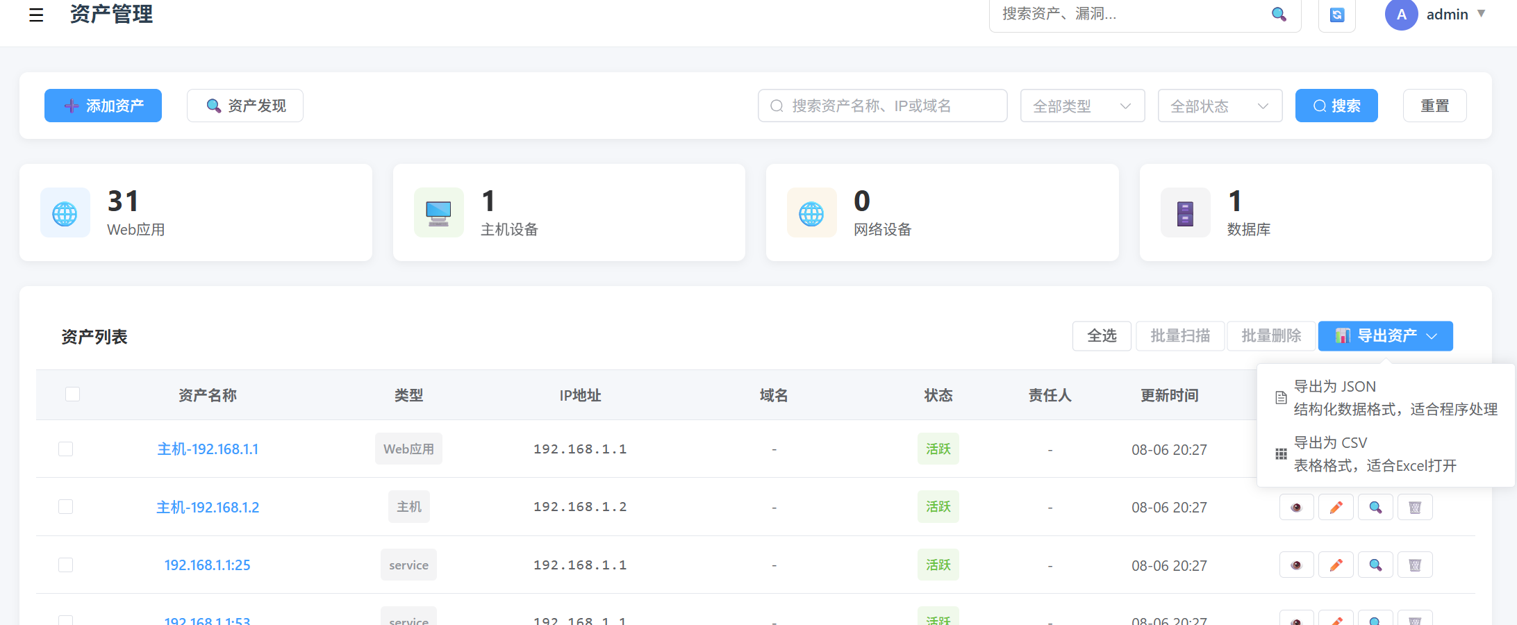 1、展示功能能够展示当前扫描器发现的资产信息、以列表和统计的形式进行展示。
