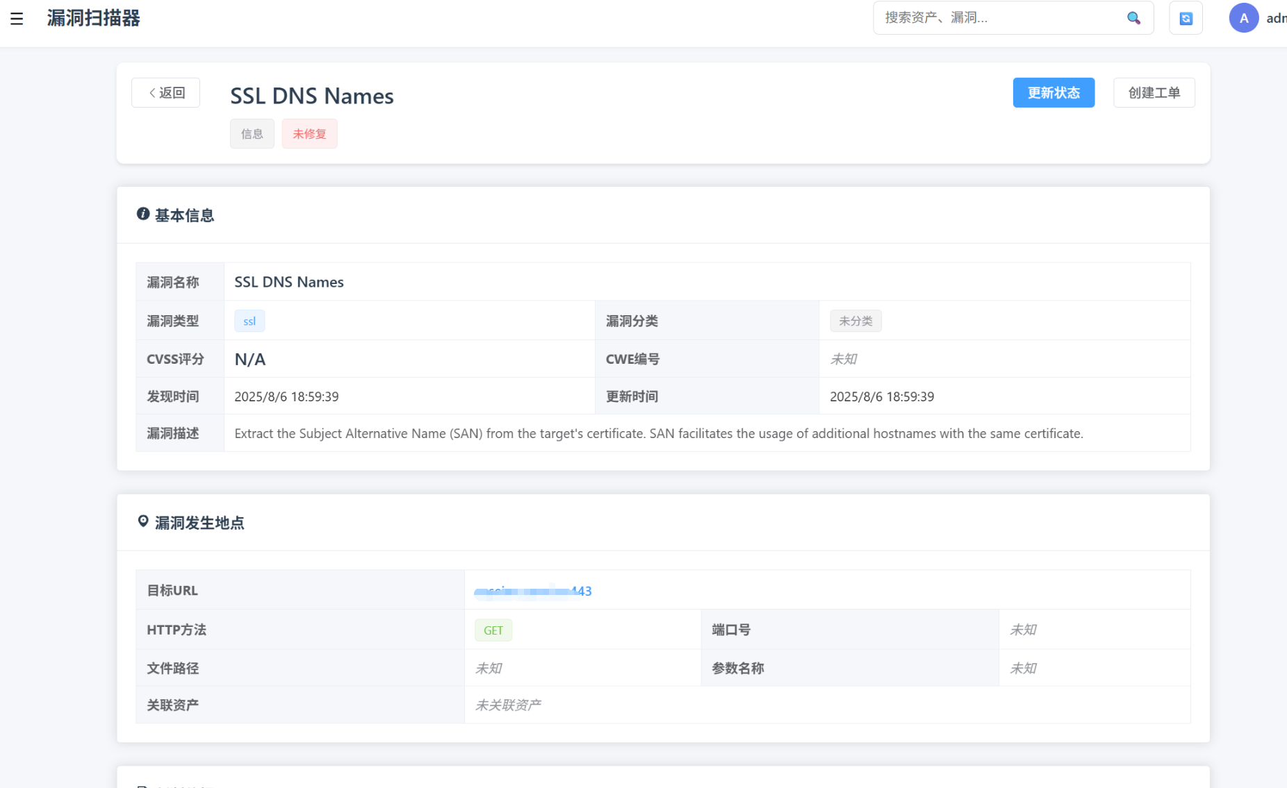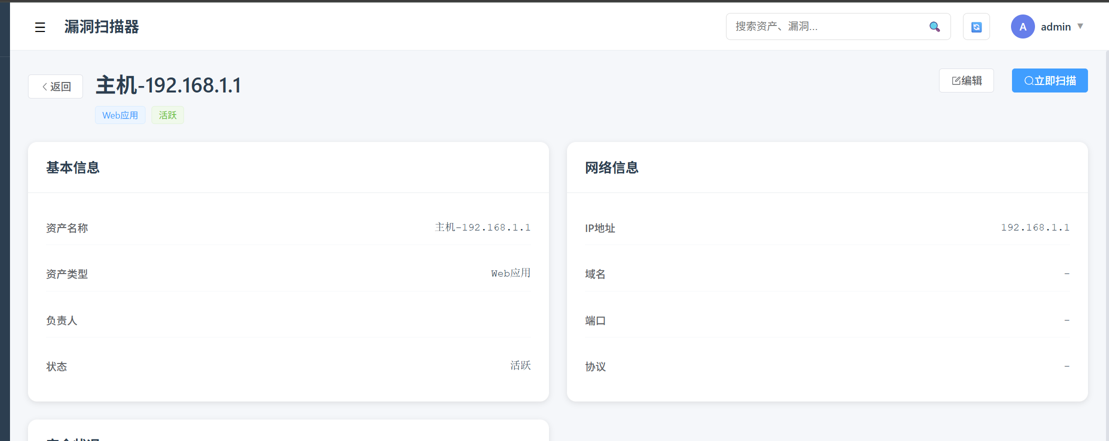 能够展示扫描器中漏洞统计情况以及漏洞列表,查看漏洞详细信息。