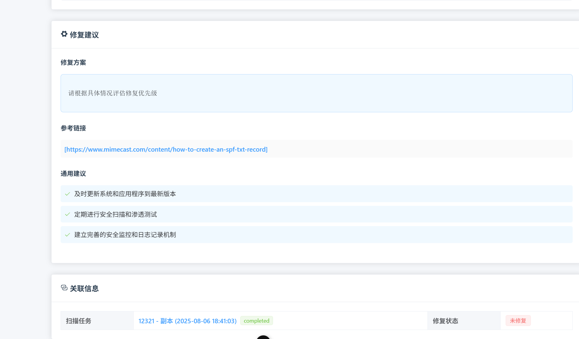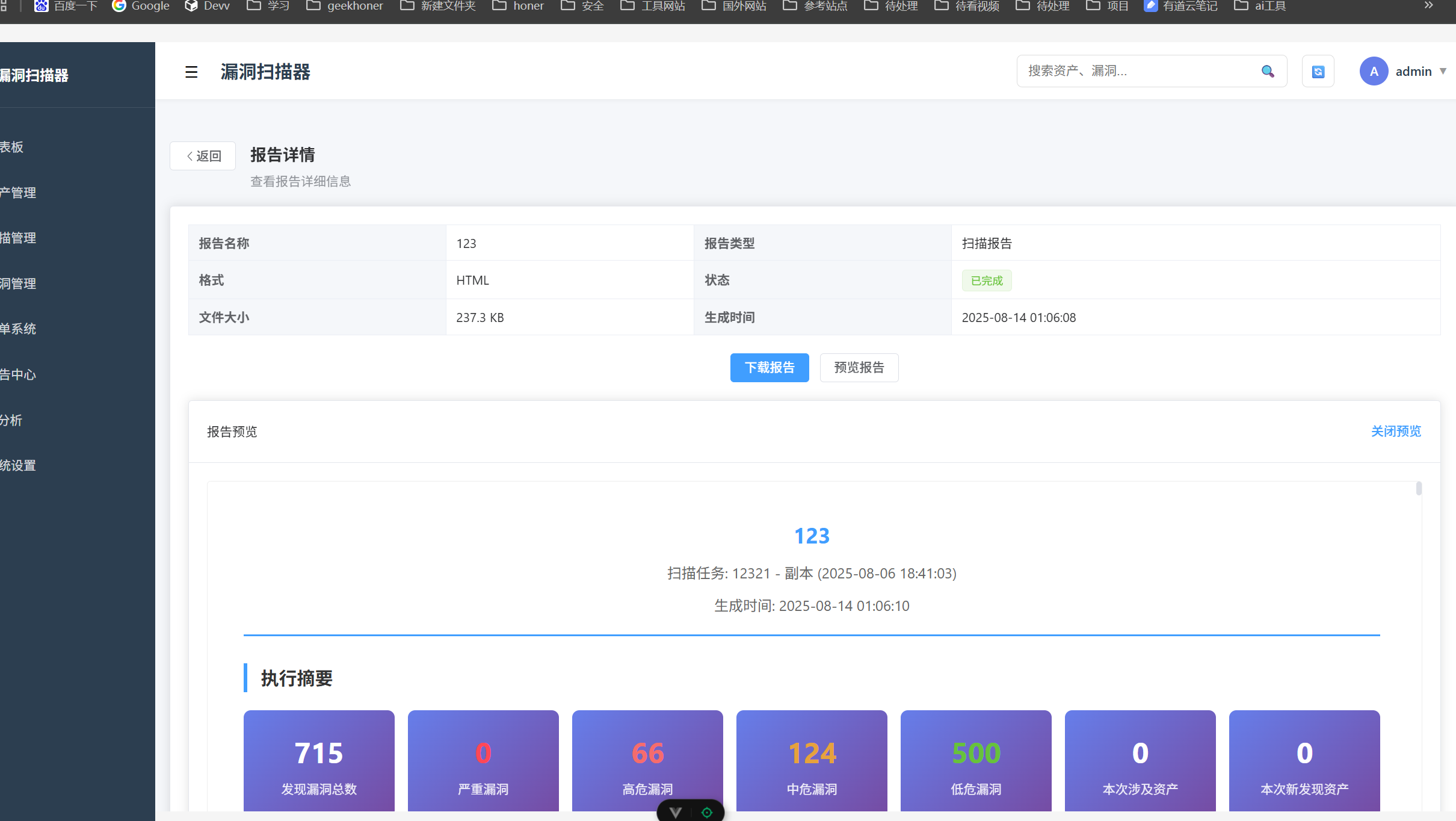 报告中含有目标信息、漏洞统计信息和漏洞详情,能够让人快速了解任务扫描结果。