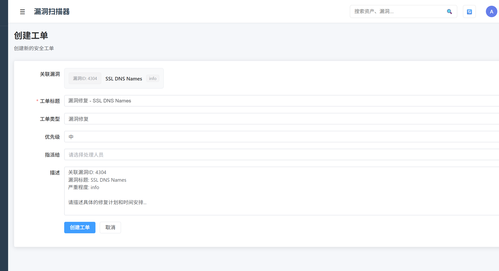 能够创建与漏洞绑定的工单,专人跟进,形成闭环
