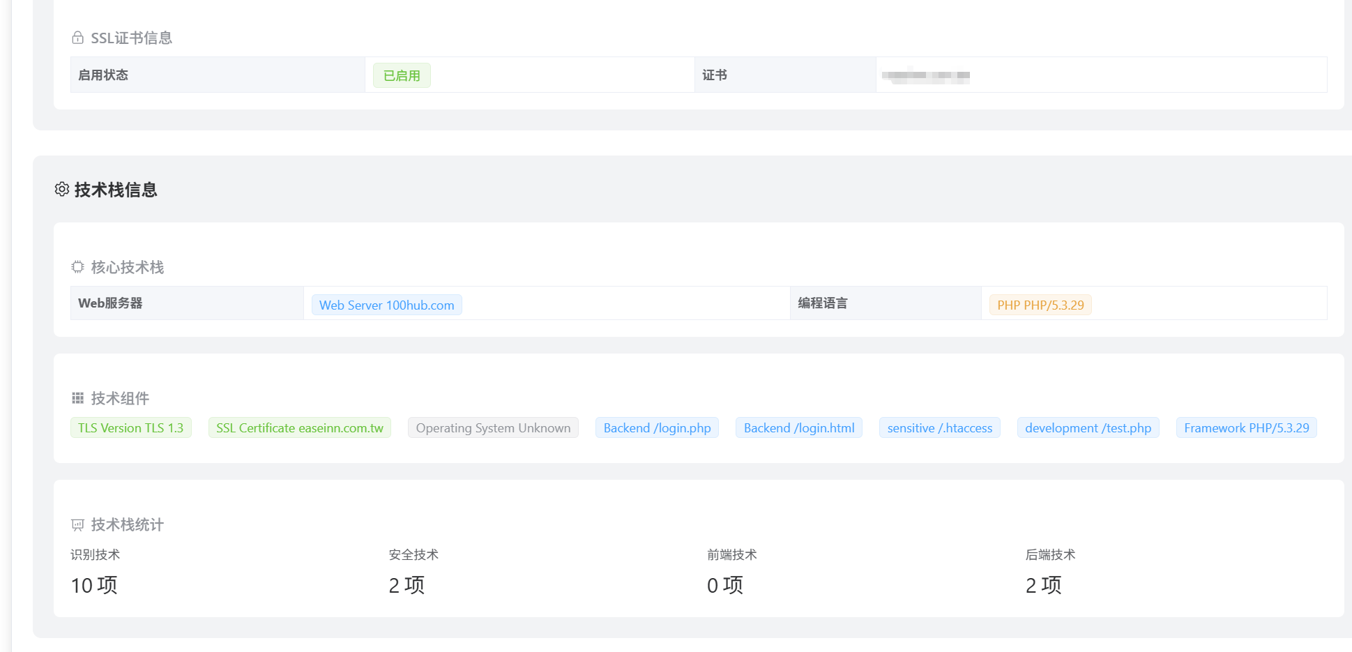 (1)信息搜集包括目标的IP、域名、协议、操作系统、安全配置、端口和服务、证书、技术栈以及目录与结构信息