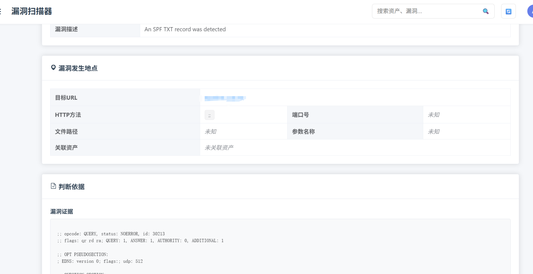 漏洞详情包含漏洞基本信息、发生地点、判断依据和修复建议。